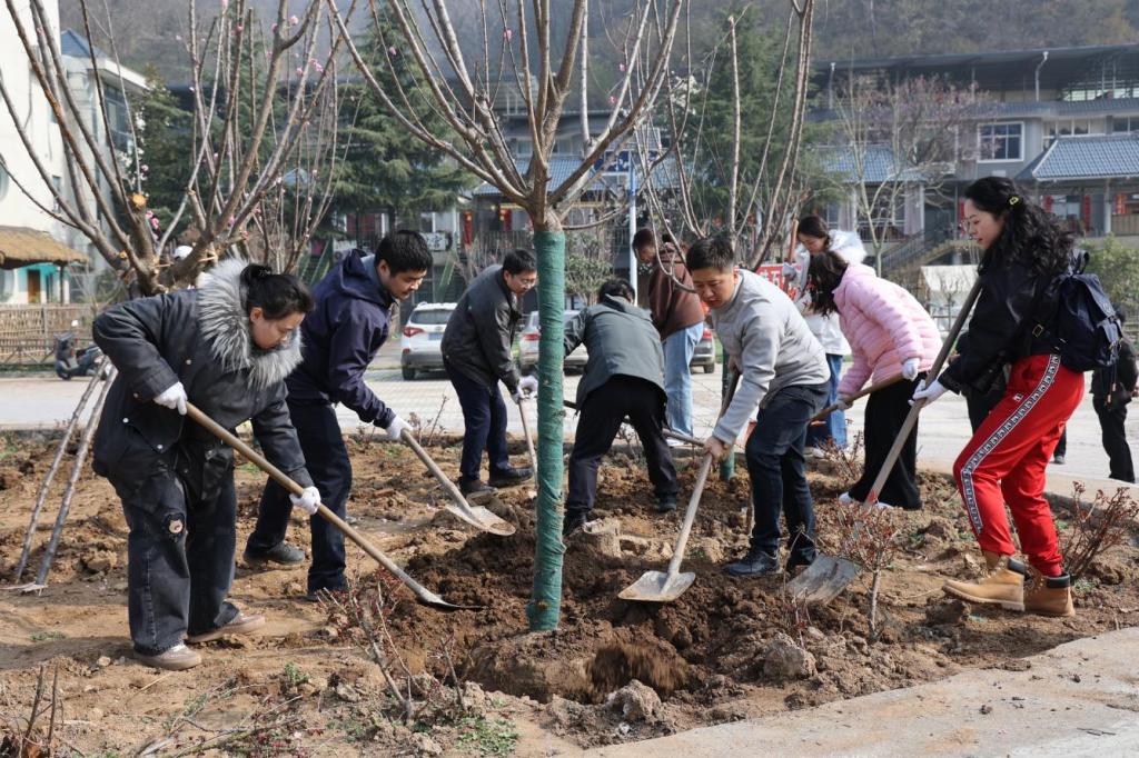 活动现场,大家在工作人员的指引下,迅速投入劳作,分工协作、默契配合,挥锹铲土、扶苗定根、培土压实、围堰浇水,每一个环节都一丝不苟、精益求精,以严谨细致的态度完成每一株树苗的栽种,现场一派热火朝天的劳动景象。经过一番辛勤劳作,一排排新栽的苗木迎风挺立,在和煦春光中展现出蓬勃生机,为秦岭的绿水青山增添了一抹靓丽的青春色彩。