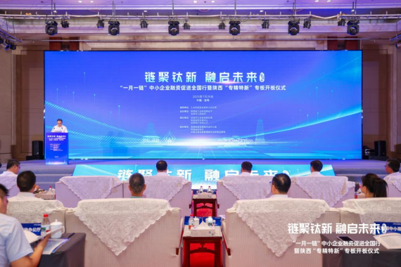 7月29日,链聚钛新 融启未来 “一月一链”中小企业融资促进全国行暨陕西“专精特新”专板开板仪式在宝鸡圆满举行,陕西“专精特新”专板正式开板。此次活动由工业和信息化部中小企业局指导,陕西省工业和信息化厅和宝鸡市人民政府主办,宝鸡市工业和信息化局、陕西股权交易中心、招商银行宝鸡分行承办,中共陕西省委金融委员会办公室、陕西省财政厅、中国证监会陕西监管局协办。